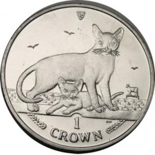| crown isle of man cat coin abyssinian cat with kitten kitty kitties coins collection |