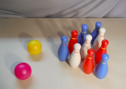 PLEASE NOTE: Our animals have not been around this bowling set....our animals have their own bowling sets. Your set will come packaged as seen in the photo.