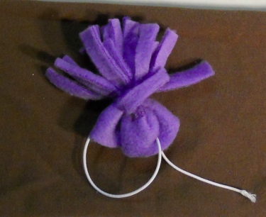 The hat stays on the animal's head with adjustable elastic. I left the elastic long so that you can move the knot to fit your animals. You can also color the elastic with permanent marker to darken it for darker colored animals.