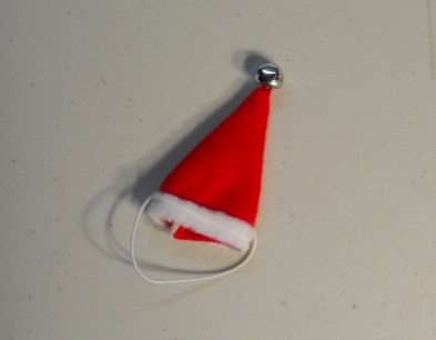 This hat is made of quality polar fleece in Red is trimmed in White polar fleece with White with a ringing Silver Bell on top. The hat attaches to your pet's head with elastic. If you have a dark colored pet you might want to dye the elastic with a permanent marker, let dry before placing on the pet's head.