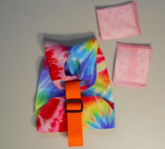 This one is for a Gosling that is past the hatchling size and a bit larger, it will fit your gosling for a few weeks. It is very adjustable. Our Embden, the fastest growing of the goose breeds wore this size at 3 weeks. This one is made with Tye Dye Print Polar Fleece and oh so cute. They grow so fasssssst! If it arrives and it would be a bit too big, wait a day or two (literally) and try it on your baby goose again. The Goose Diaper Holder comes to you with two Pantie Liners to get you started.