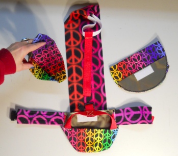 This Goose Diaper Holder Harness is made with Peace Sign Print, backed with a waterproof fabric and it is oh so cute. This Goose Diaper Holder can be lined with a sanitary napkin, a human baby diaper, a folded newspaper page or other folded papers.