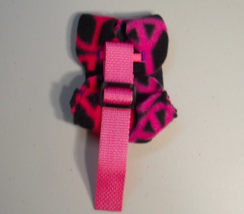 The Goose Diaper Holder I have designed is made of polar fleece. Polar Fleece is light weight, soft, has a bit of give/stretch to it and can be washed in the washing machine or by hand and hung to dry. Polar Fleece was created for sportsmen. You can wash out polar fleece, ring it out very well, and put it back on, even damp it will dry pretty quickly. When polar fleece first came out I was backpacking with and training and racing sled dogs....wonderful stuff. Before it, fabrics used would hold the water or wetness that sportsmen would encounter. Polar Fleece is non absorbent and perfect for Goose Diaper Holders.