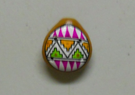 They come in different nicely painted prints and are made from a cotta. They measure about 1 3/4" long and 1 1/2" wide. A fun little whistle with a tiny hole for hanging from a string or chain.