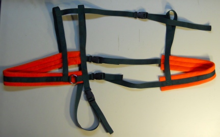 This is an easy to put on and off Wagon Harness for Goats. It has four quick release buckles, once set up to the goats size with easy adjusting, takes about 20 seconds to put on or take off the goat.