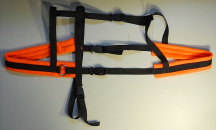 Goat Harness Facts: Webbing: BLACK Polly Webbing Padding: ORANGE Polar Fleece Rings: Heavy Weight Welded Metal Buckles: Quick Release Heavy Weight High Impact Plastic