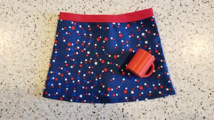 This cute Skirt with the Red/White/Blue Swirl Print comes with a RED 3D Printed Mug for your Smart Doll to hold for photos.