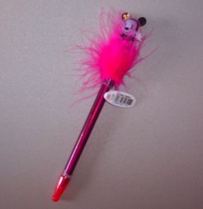 This is a cute little Mouse, perhaps Minnie Mouse Ink Pen with a Feather on the end that when moved in front of most ratties and played with, the ratties will learn to follow the feathers. The pen has a cap on the point and when used will light up.