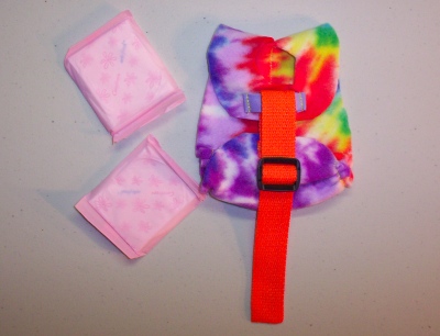 The Goose Diaper Holder I have designed is made of polar fleece. Polar Fleece is light weight, soft, has a bit of give/stretch to it and can be washed in the washing machine or by hand and hung to dry. Polar Fleece was created for sportsmen. You can wash out polar fleece, ring it out very well, and put it back on, even damp it will dry pretty quickly. When polar fleece first came out I was backpacking with and training and racing sled dogs....wonderful stuff. Before it, fabrics used would hold the water or wetness that sportsmen would encounter. Polar Fleece is non absorbent and perfect for Goose Diaper Holders.